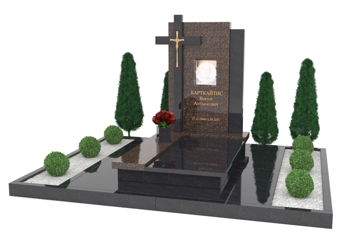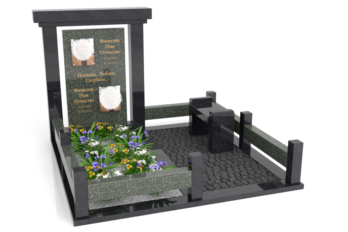 гранита.Цветник сделан из Дымовского гранита, не имеет нижней плиты.